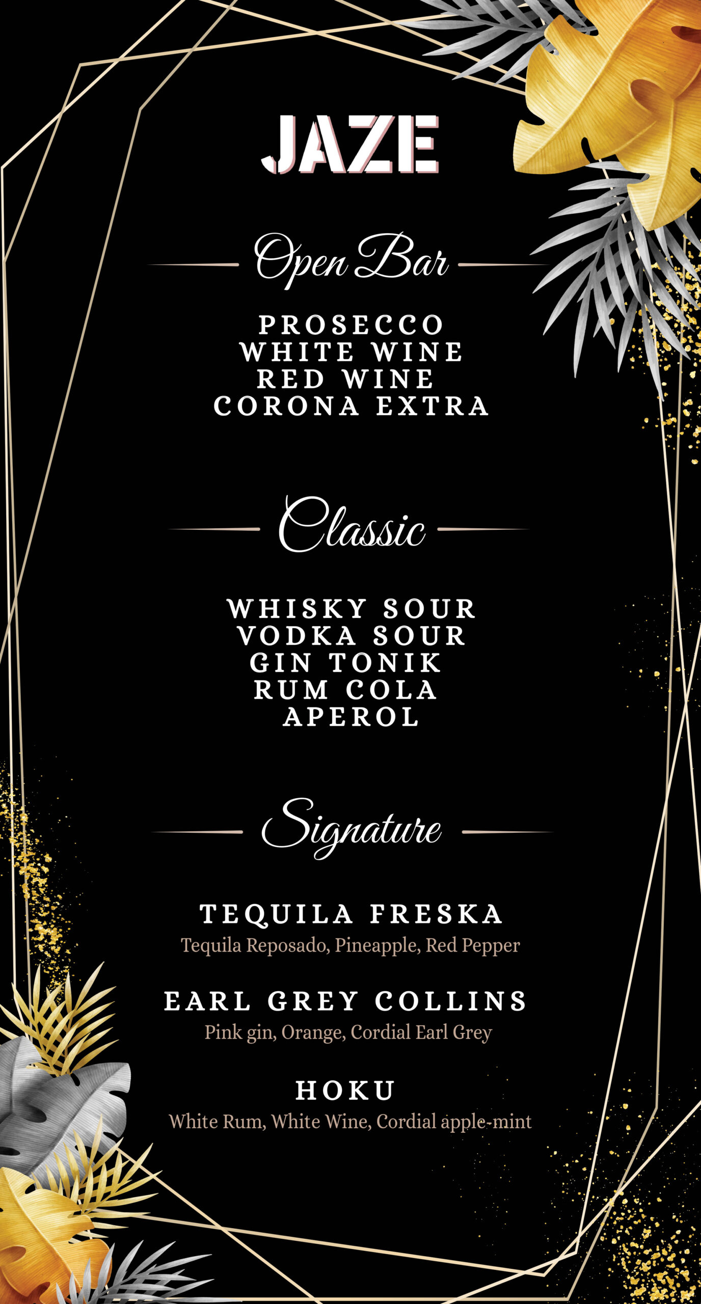We’re excited to announce that JAZE is back in business starting Tuesday, 12th of August 2025. Come enjoy our creative cocktails and fine dining in our beautiful secret garden.